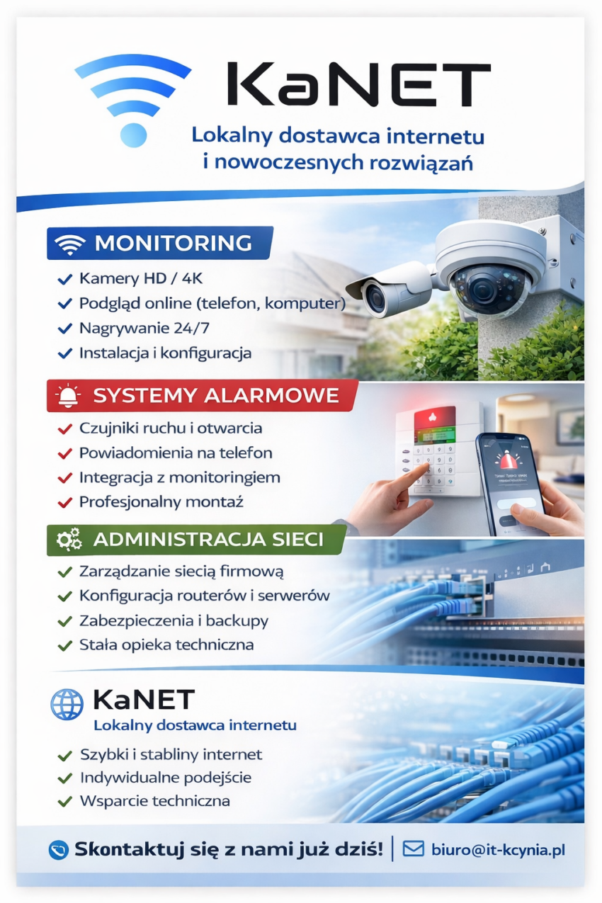 Zakład Usługowy RTV w Kcyni podpisał umowę na świadczenie naszych usług po światłowodach firmy Światłowód Inwestycje, która zbudowała sieć także w Gminie Kcynia. Cennik będzie na naszej stronie Zapraszamy do składania zamówień, sprawdź swoją lokalizację na „Mapie zasięgu”